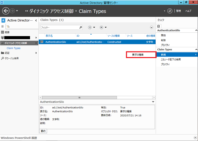 右ペインの[Claim Types] > [新規] > [要求の種類]