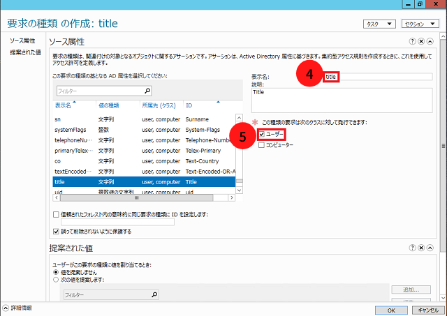 - 4. 表示名:任意の名前を入力(今回は”役職”)