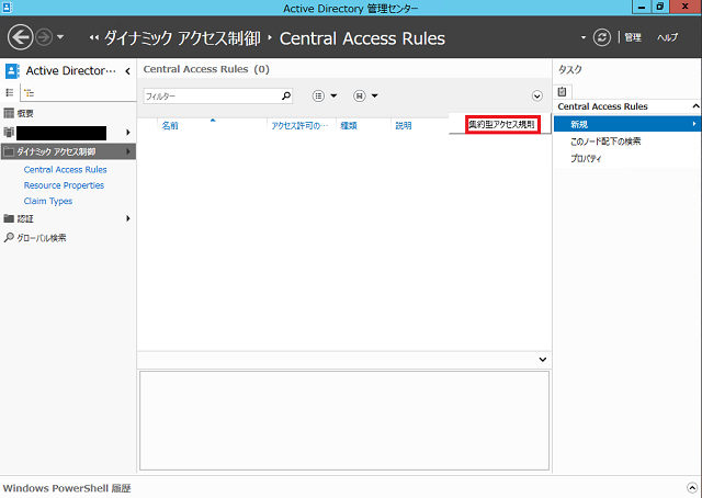 [ダイナミック アクセス制御] > [Central Access Rules]