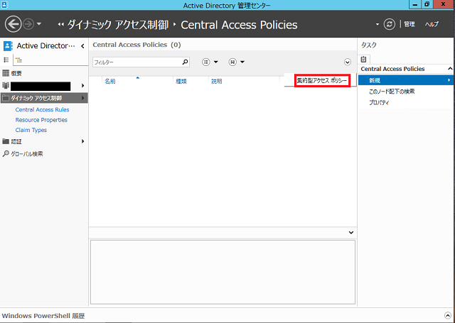 [ダイナミック アクセス制御] > [ Central Access Policies]