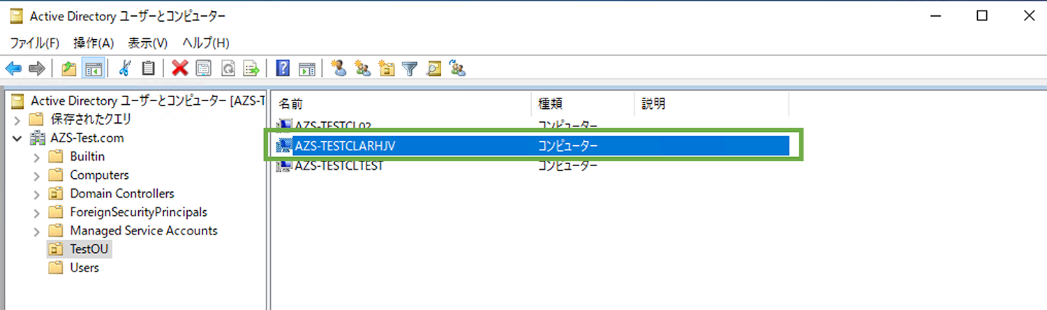この時点でドメイン参加プロファイル名で登録されます。今回は「AZS-TestCLArHJV」です。