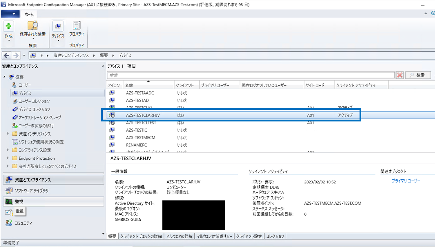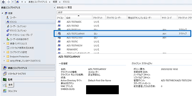 2.IntuneにADに作成されたアカウント名「AZS-TestCLArHJV」でデバイスが登録されます。