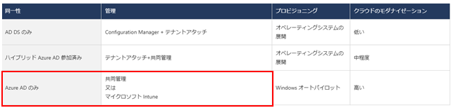 Entra Join環境での管理は、共同管理もしくはIntuneです。
