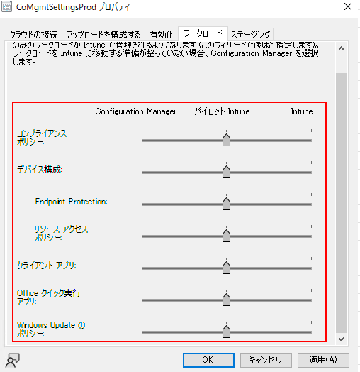 共同管理を使用することで、社内ネットワークの端末も社外ネットワークの端末も同時に管理が可能な上、一部機能については管理項目のワークロードを指定することでMCMとIntuneのどちらのサービスで管理するかを選択することができます。