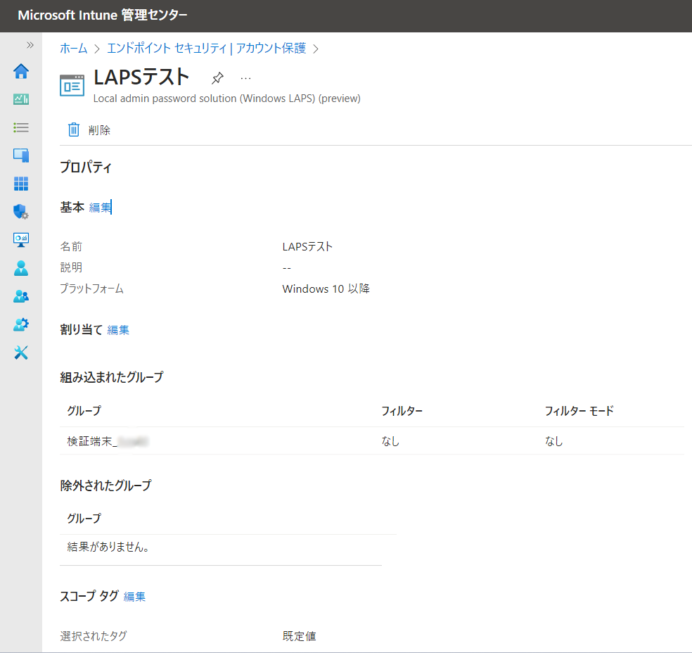 3. 任意のデバイスグループに展開すると、展開したデバイスグループパスワード管理がLAPSで可能になります。