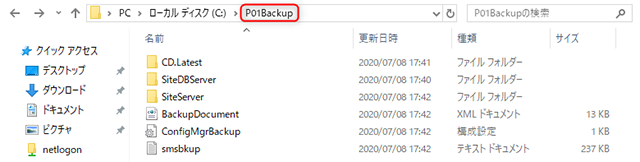 手順3で指定したパスに「[サイトコード]Backup」フォルダが作成されていることを確認します。