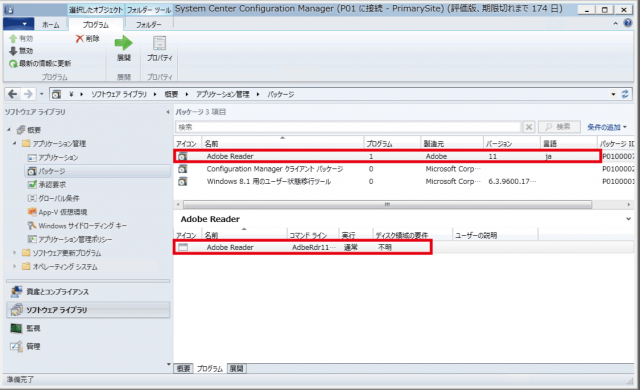 ▼作成したパッケージとプログラムがSCCM上に表示されます。以上のような方法でパッケージを登録することができます。
