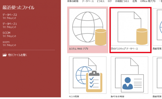 ▼データベースの選択画面から空のデスクトップデータベースをクリックします。
