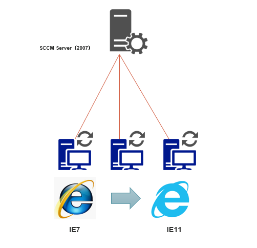 Windows 7 向け端末に Internet Explorer 11 をインストールするというプロジェクトでした。