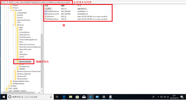 このクライアントPCには、取得したいレジストリが実際に設定されている必要があります。