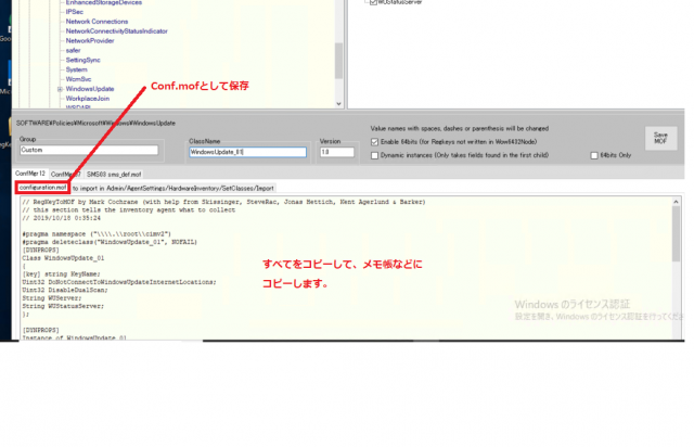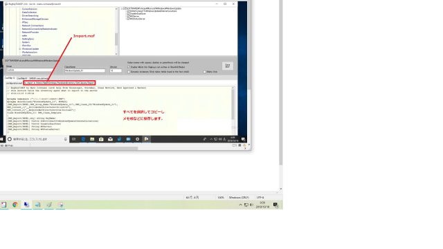 次に同じように右のタブをクリックし、同じようにコピーし、メモ帳に「Import.mof」として保存します。