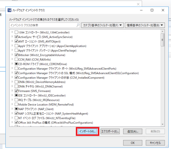 表示されない場合はインベントリ収集がきちんとできているか確認しましょう。いくら設定が正しかったとしても、ハードウェアインベントリを収集できていなければ取得できません。