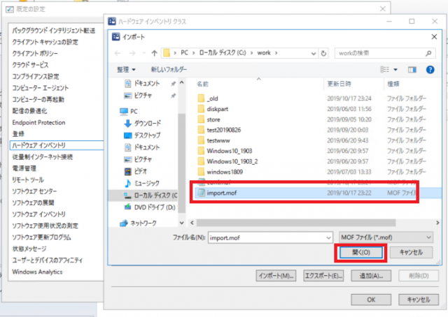 ⑤任意の場所に保存したimport.mofファイルを指定して開く