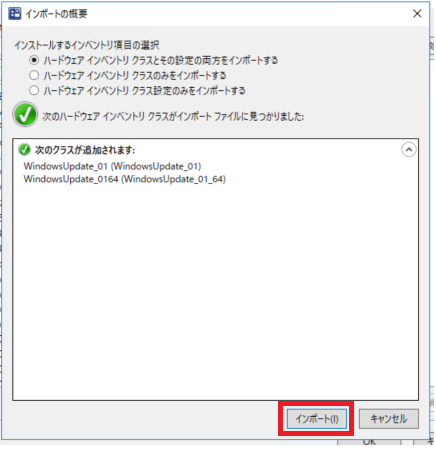 ⑥確認画面が表示されるのでインポートする