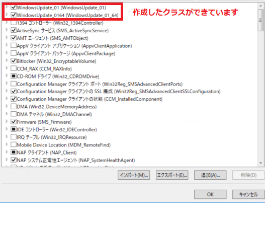 移動したらClassNameを変更します。本来であればそのまま使ってもよいですが、重複したり分かりにくくなるので今回はWindowsUpdate_01としています。
