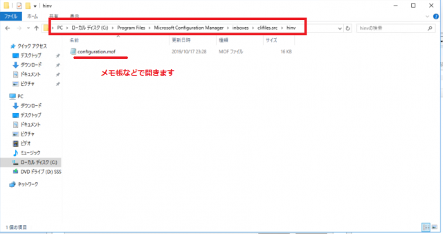 ③configuration.mofというファイルがあるのでメモ帳で開く