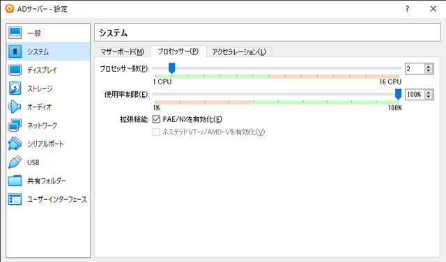 ADサーバの仮想マシンを作成します。今回は以下のような設定で作成しました。