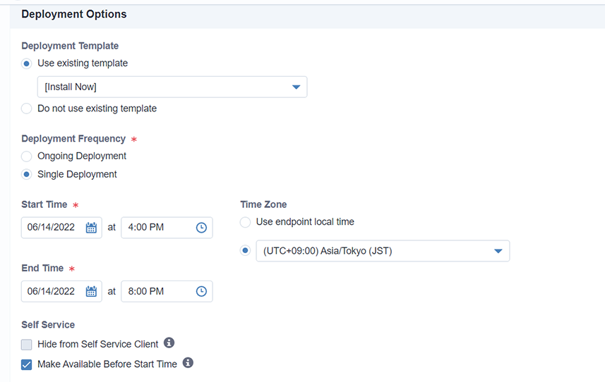 5.「Deployment Options」では、展開するタイミングを指定することができます。