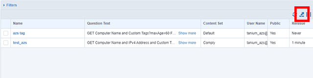 Taniumでは一度作成したQuestionを保存し、保存したQuestionを定期的に実行させることができます。