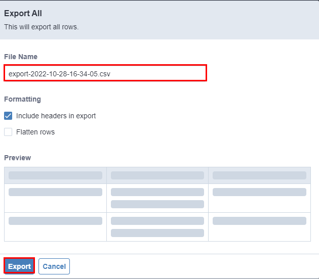 【2】このような画面が表示されます。「Export」をクリックするとCSVファイルで保存することができます。