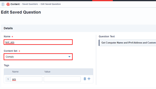 【3】「Details」では「Name」でQuestionの名前と「Content Set」から保存するQuestionの目的を設定します。