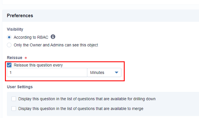 【6】「Reissue」ではQuestionの自動実行を行う期間を設定できます。分、時間、日単位で指定が可能です。