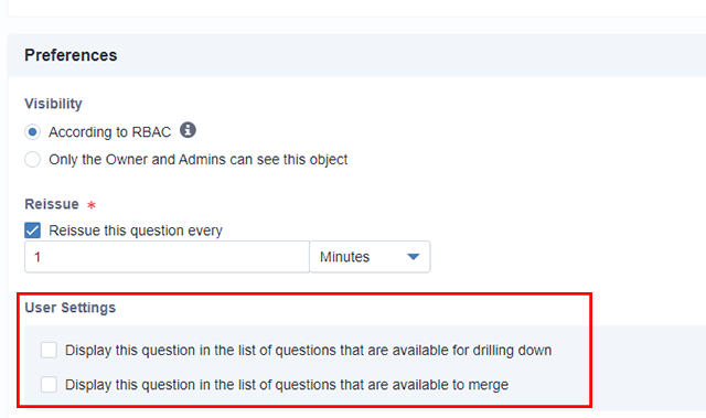 【5】「User setting」では「他のQuestion下部にドリルダウン可能にする」、「他のQuestionをマージ可能にする」オプションを設定できます。
