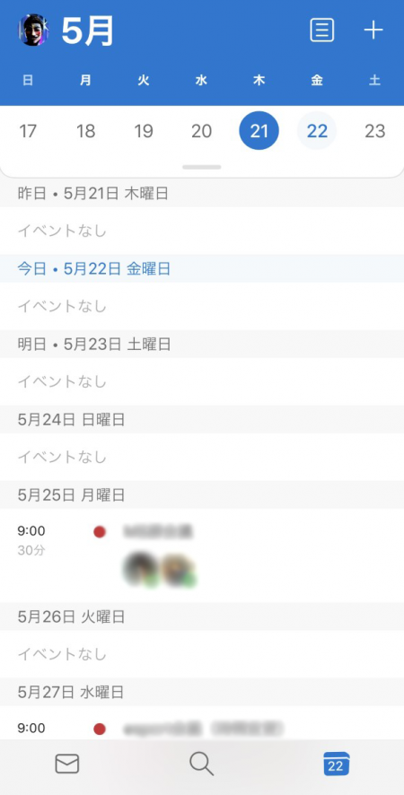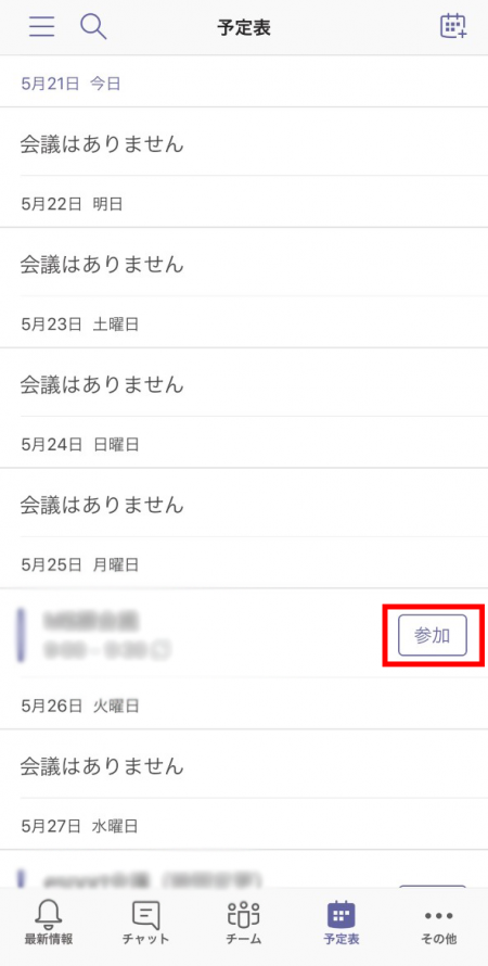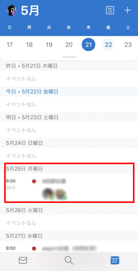 ▼▼予定表から、会議が設定されている日にちをタッチ。