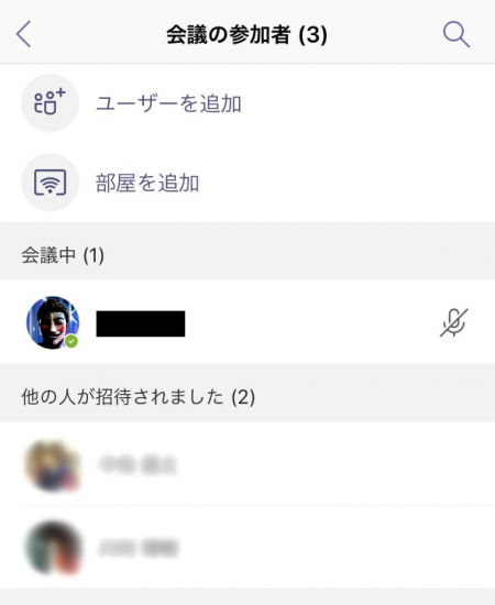 ▼すると、以下の様な画面になる。参加している場合は、「会議中」の場所に名前が表記される。