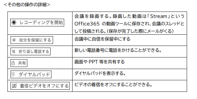 - 録画は、参加者全員が会議から退席すると、自動的に停止する。