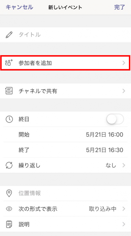 ▼この二つの場合は赤い四角で囲まれた「参加者を追加」を選択する。