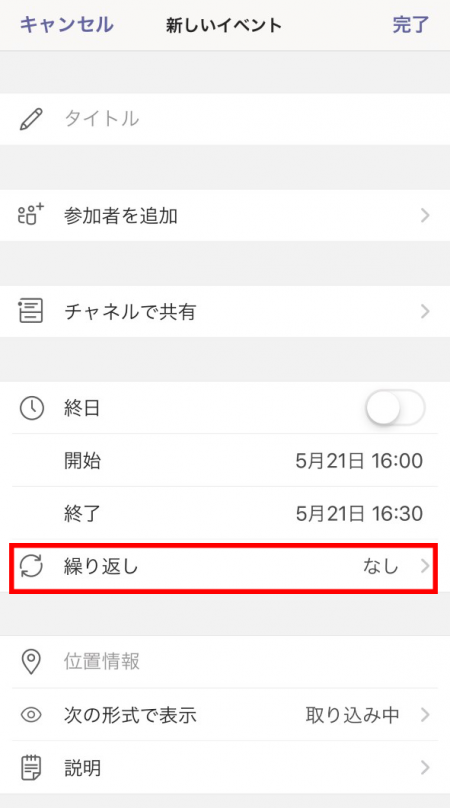 会議は一回きりのモノもあれば、定期的に開催したいモノある。そんな時は繰り返し機能だ。