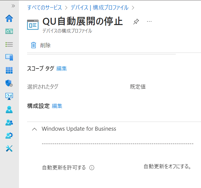 ということで、先述の更新リングが適用している端末に、自動更新をオフにする構成プロファイルを展開しました。