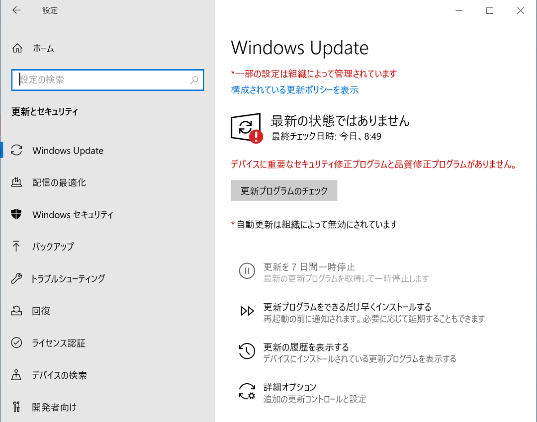 *自動更新は組織によって無効にされています。