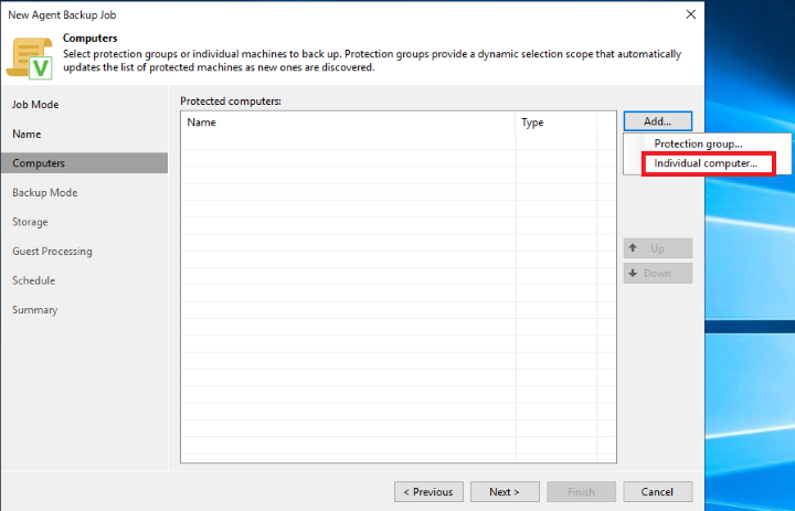 ジョブ作成時に新しいコンピューターを追加するはずが、保護グループを追加しようとしていたため。