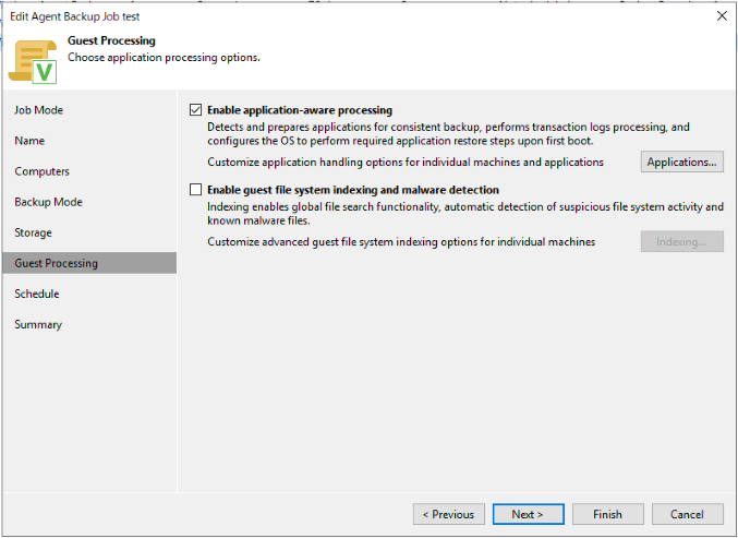 4. Guest Processingでアプリケーション認識処理やVMゲストOSファイルのインデックス作成などを任意で有効にする