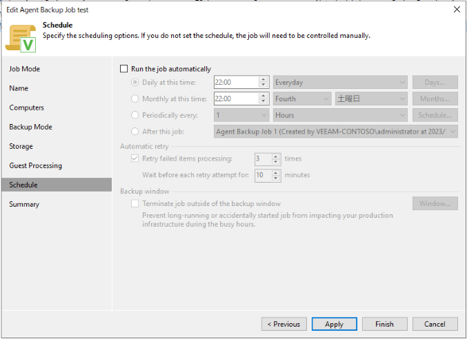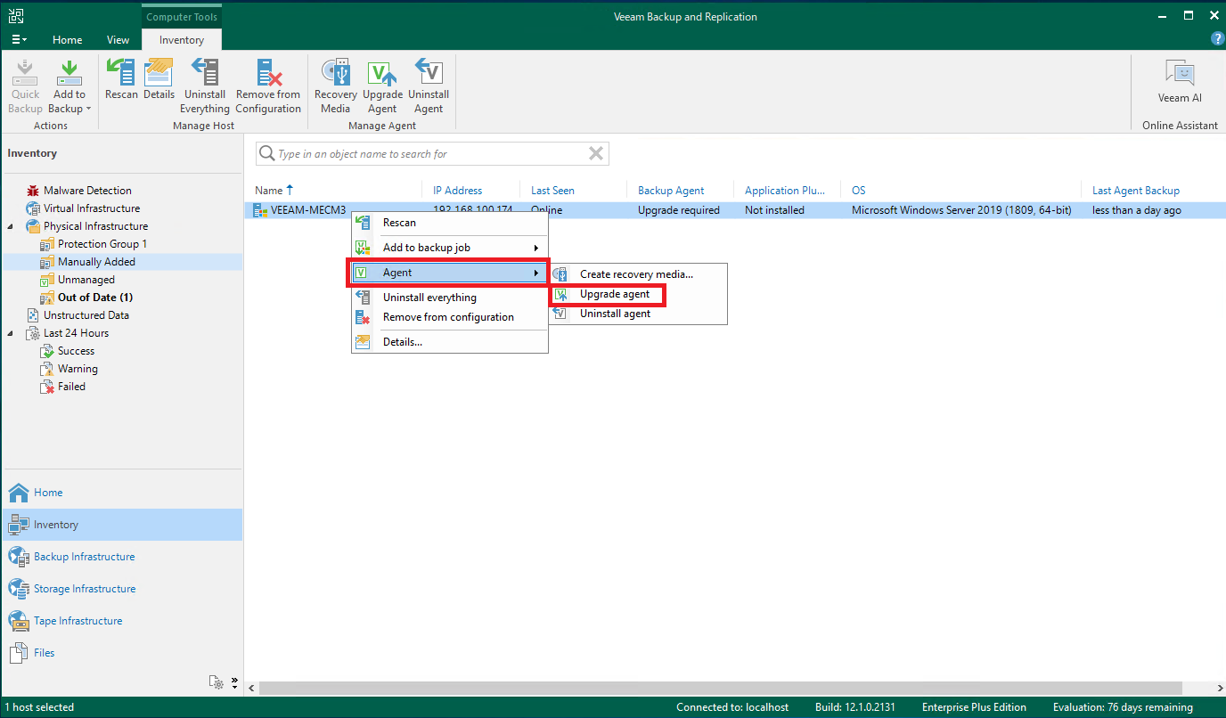 保護グループを作成し時間設定を行うか、Veeam Backup&Replicationコンソールから手動でAgentのアップグレードを行います。