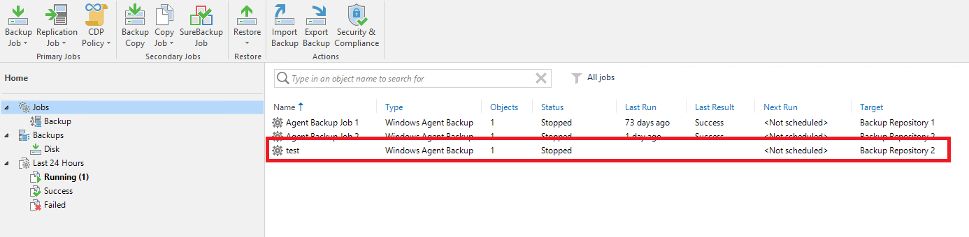 今回は「Veeam Backup & Replication管理モード」で動作をしていたため、システムトレイにアイコンが表示されませんでした。