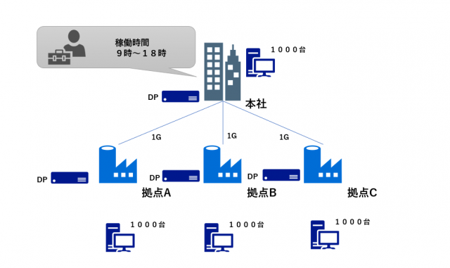 サーバリソースがあるなら4拠点に同等サーバをもう一台設置し、バックアップ・負荷分散としての配布ポイントを作成するのも良いですね。