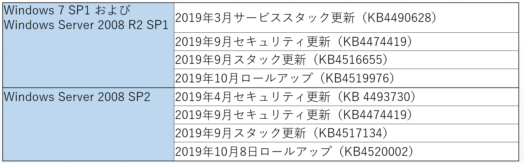 ESU を購入する前に、以下の更新を適用する必要があります。