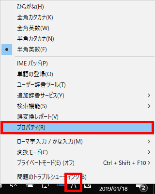 ▼IMEのタスクトレイを右クリック → プロパティ