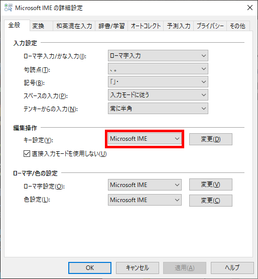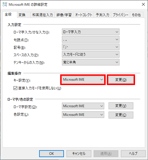 ▼「Microsoft IME」を選択 → 「変更」をクリック